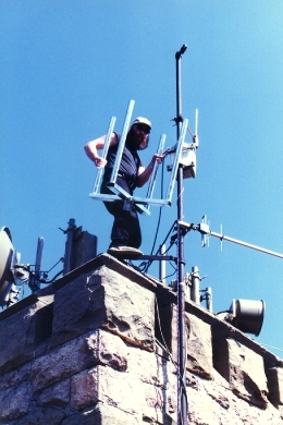 Hohe Warte bei Elgersburg | OM Jörg, DL3AKB, bei der Montage der Antennen |